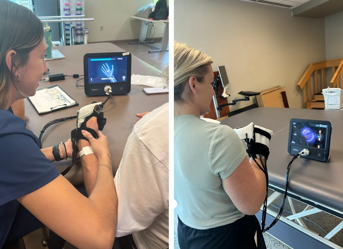 The BIONIK InMotionARM™ Robot is often used with many patients who suffer from weakness in their upper extremities after a stroke. The ARM Robot helps patients utilize their strength to complete hundreds of repetitions in a fraction of the time of traditional exercise. Repetition is one of the most important factors when considering neuroplasticity and the brain’s ability to repair and relearn movements following a stroke. This evidence-based neurorehabilitation technology quietly monitors the patient’s movements during therapy while gently assisting where needed to help them complete various motor therapy activities.